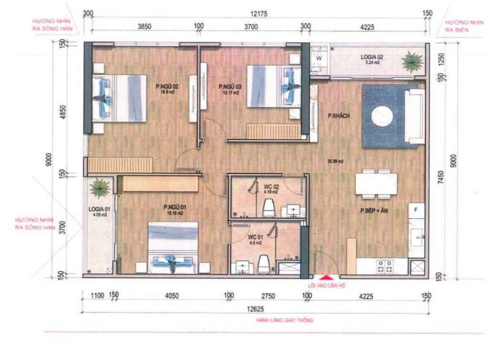 + Căn 3PN - DT 104,28m²