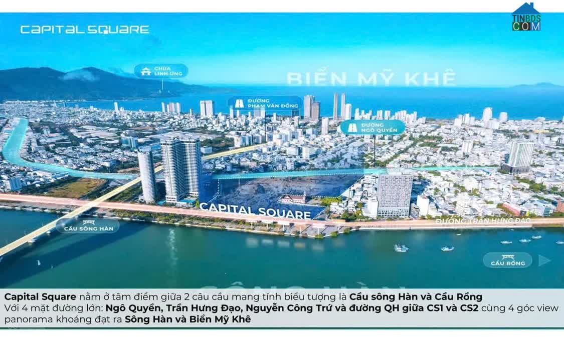 Capital Square Đà Nẵng – City-in-City giữa lòng Đà Nẵng cạnh bên sông Hàn Vị trí đắc địa bên bờ sông Hàn – sở hữu 3 mặt tiền vàng: Trần Hưng Đạo – Ngô Q..