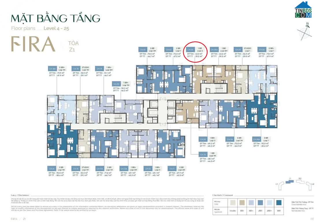 Diện tích: 43 m²