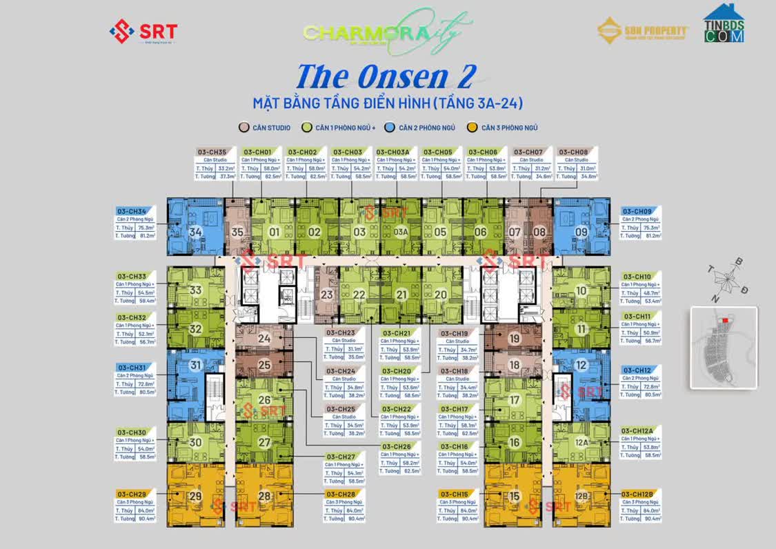 - Các loại căn hộ: STUDIO, 1PN+, 2PN VÀ 3PN