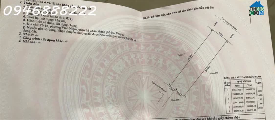 Khu 5 Vĩnh Niệm - Cạnh sát AEON MALL - Phân lô đẳng cấp nhất Lê Chân Diện tích: 100m2 - Ngang 5. 0m Hướng: Đông Bắc Lô đất phân lô đường 15m - Vỉa hè..