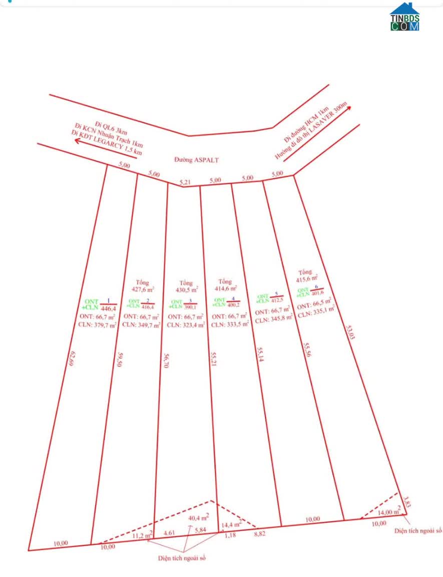 THÔNG TIN TỔNG KHU 6 LÔ • Diện tích mỗi lô: Hơn 400m² • Trong đó: 66m² đất ở, còn lại đất vườn • Đường bê tông ô tô tránh nhau VỊ TRÍ VÀNG – TĂNG GIÁ TỪNG NGÀY..