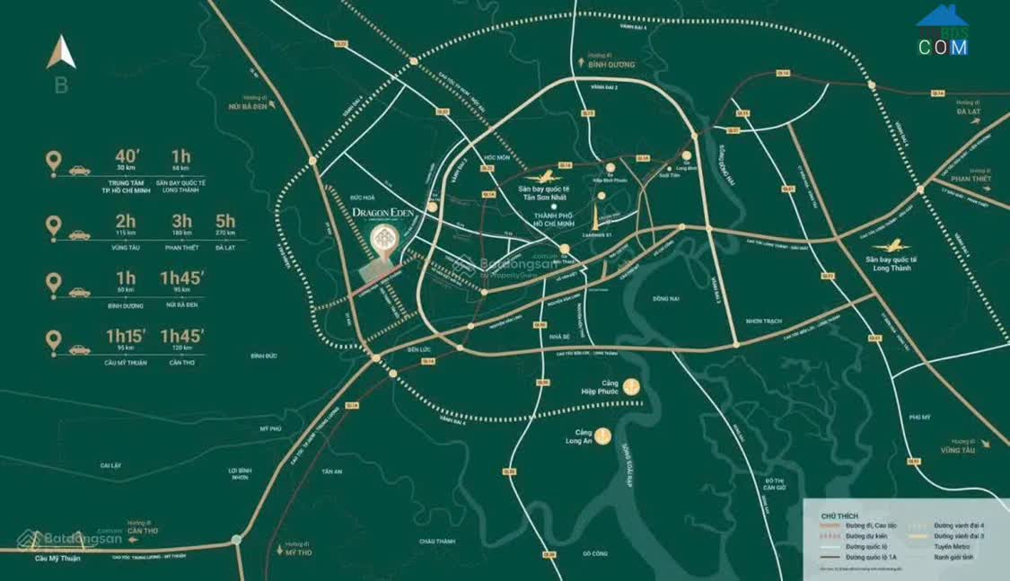 Thông tin mô tả Đất nền dự án tại Huyện Bến Lức - Long An Sở hữu nền đất Dragon Eden, mặt tiền đường 60m, tiềm năng sinh lời, chính sách thanh toán vượt trội Th..