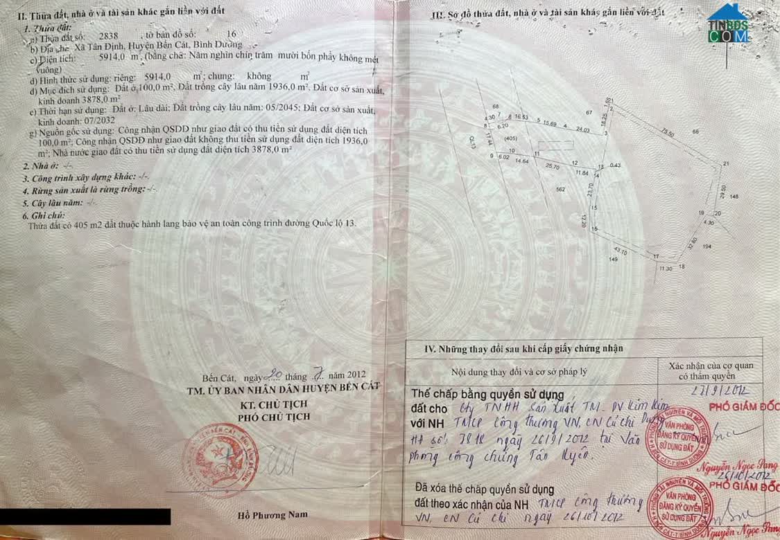 Vị trí: Xã An Điền, TX. Bến Cát, tỉnh Bình Dương. Diện tích: 1. 016, 4 m² (có 100 m² thổ cư, phần còn lại đất trồng cây lâu năm, lên full thổ cư). Pháp lý: S..
