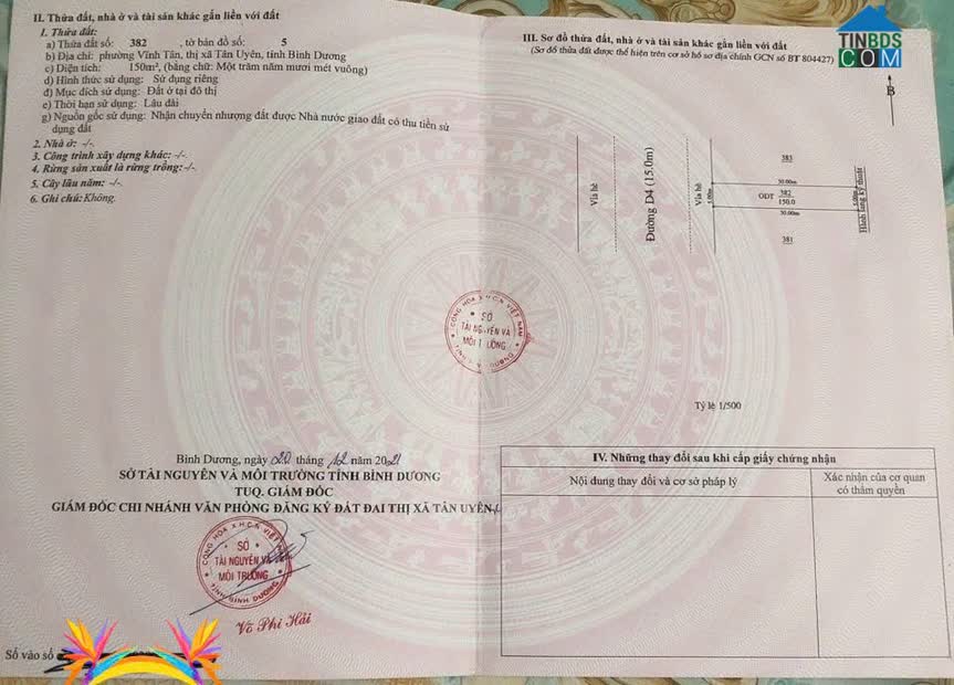 Tỉnh Bình Dương+ Diện tích: 150m² (ngang 5m * dài 30)