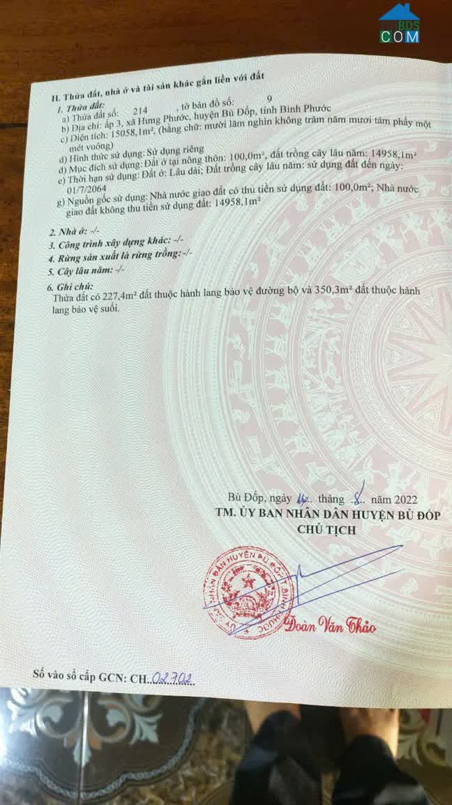 BÁN LÔ ĐẤT MẶT TIỀN ĐT 759B – HƯNG PHƯỚC, BÙ ĐỐP, BÌNH PHƯỚC => Giá chỉ 3, 7 tỷ – vị trí hiếm, tiềm năng tăng giá mạnh *Thông tin lô đất: - Diện tích: 6. 037 m..