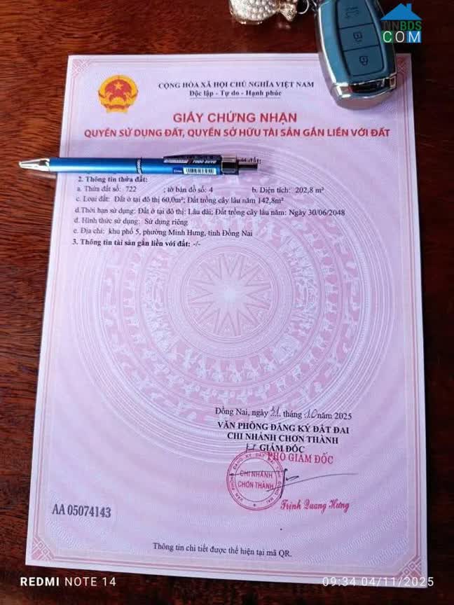 Diện tích 200m2 (5x40m), có thổ cư Vị trí: Phường Chơn Thành, Đồng Nai Cách quốc lộ 14 2km Đầy đủ tiện ích xung quanh: Chợ, trường học, UBND,... Gần các KCN Chơ..