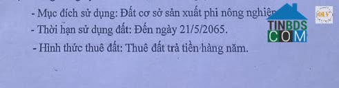 Loại đất: Đất SKC – trả tiền hàng năm đến năm 2065
