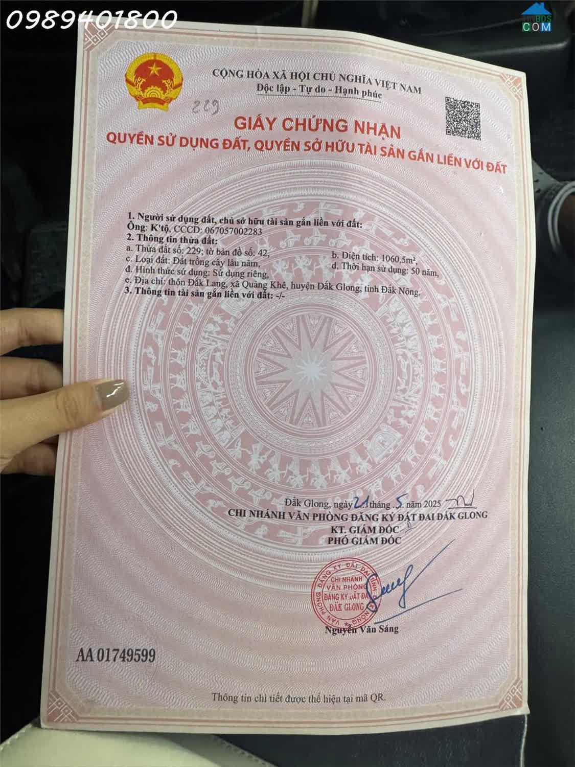 Bán nhanh lô đất thổ cư, đường quốc lộ 28Địa chỉ: thôn 9 Quảng Khê, huyện Đắk Glong, tỉnh Đắk NôngDiện tích: 1320m2 (22x60m)Có 150m thổ cư (22m mặt tiền)Tiện..