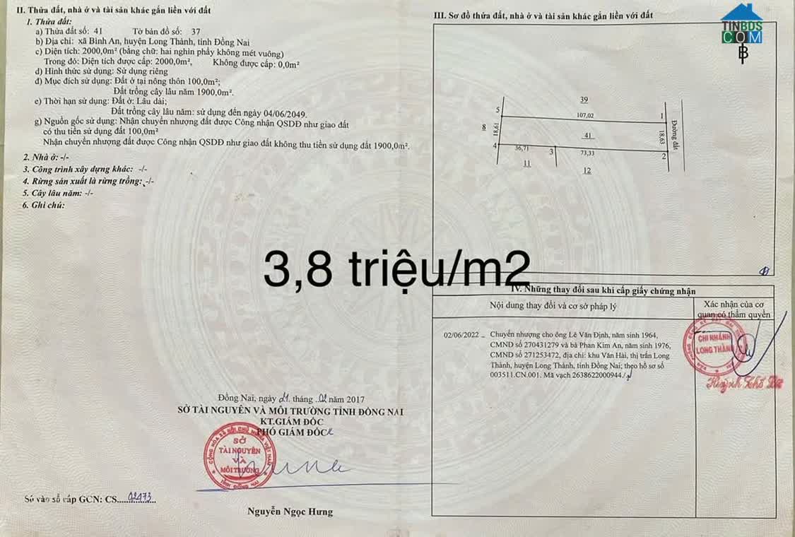 CHÍNH CHỦ CẦN BÁN GẤP ĐẤT THỔ CƯ CÓ VỊ TRÍ ĐẸP GẦN SÂN BAY LONG THÀNH Vị trí: Ấp 9, xã Bình Sơn, huyện Long Thành, tỉnh Đồng Nai Diện tích: Tổng 222..
