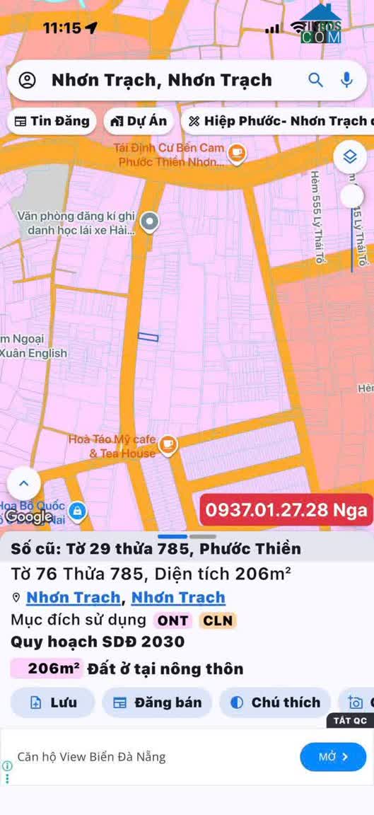 ngợp gửi bán lô đất mặt đường Lý Thái Tổ- Phước Thiền- Xã Nhơn Trạch- Đồng Nai Diện tích 192m (6x30m nở hậu 6, 7m)sổ riêng Full thổ cư 100% Mặt tiền có Nhà c..