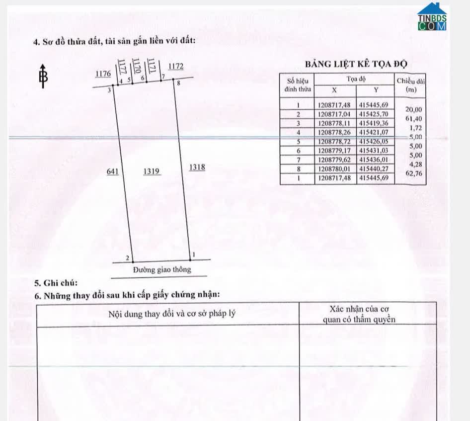 * Diện tích: 1, 270m2, thổ cư 100% với kích thước ngang 20m, đất nở hậu 21m và chiều dài 62m