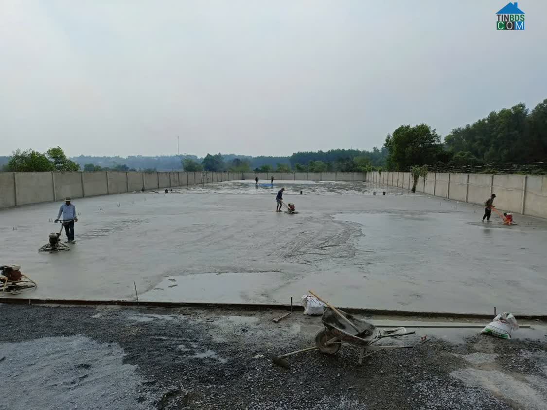 Đất vuông vức. Đã xây tường rào và sân đổ bê tông bằng phẳng.