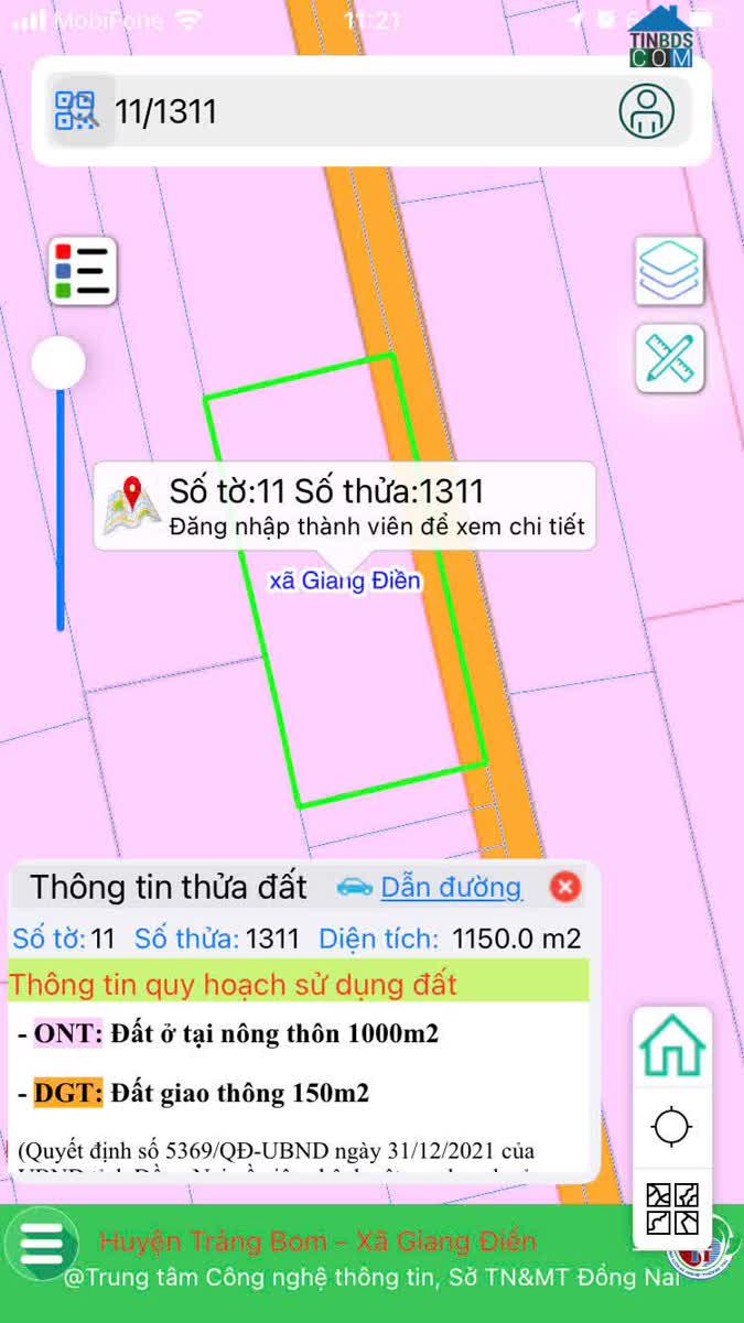 - Vị trí: Thuộc xã Giang Điền, huyện Trảng Bom, tỉnh Đồng Nai. Mã số: TGĐ-01.