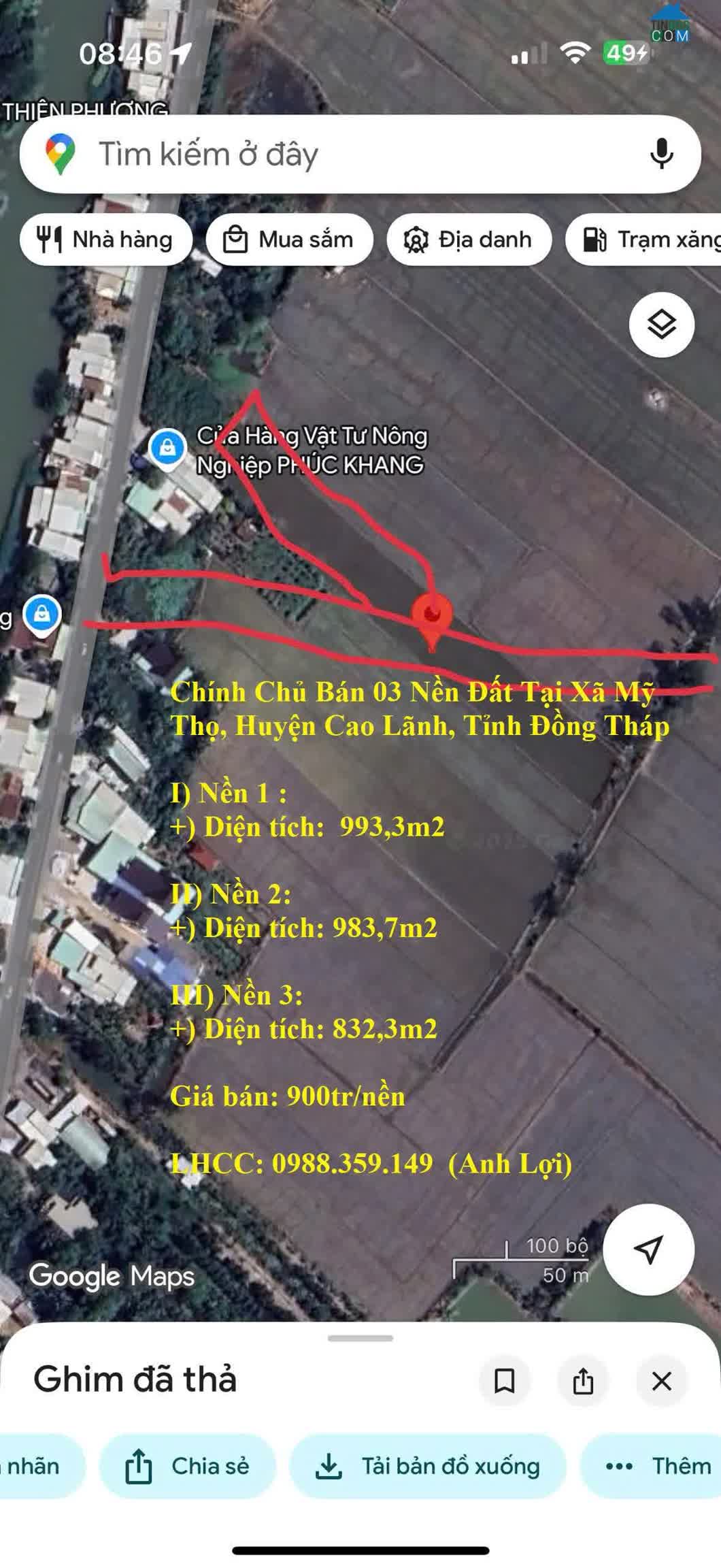 CHÍNH CHỦ Bán Nền Vị Trí Đẹp Tại Ấp 2, Xã Mỹ Thọ, huyện Cao Lãnh, Đồng Tháp Diện tích: 5886m2 Giá bán: 1 tỷ 650 triệu - Vị trí: đất gần mặt đường, khổ vuôn..