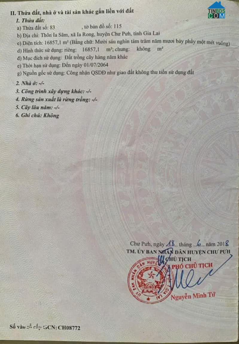 CHƯ PƯH, GIA LAI - Diện tích: hơn 5 sào (hơn 5000m2) đất đỏ ba zan - Giá chỉ 290tr bao sổ -Sổ vuông vức, hơn 70m mặt tiền -Đất bằng phẳng, oto vào tận nơi