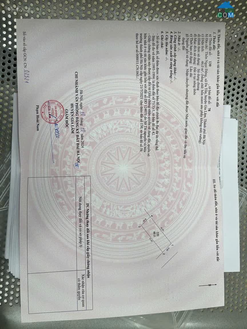Tôi cần bán mảnh đất Đa Tốn - Bát Tràng Diện tích 46 m2, mặt tiền 4. 05 m, nở hậu, đường ô tô vào nhà Gần chợ cọc, trường mầm non, tiểu học, trung học Đa...