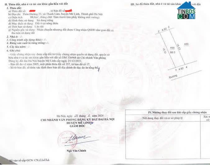 Đất thổ cư tổ 9 thị trấn Quang Minh Mê Linh Hà nội, mặt tiền 16 m nở hậu sâu 18 m đường ô tô 4m Diện tích: 290 m² đất có 120m² thổ cư SĐCC tổ 9 thị trấn Quang..