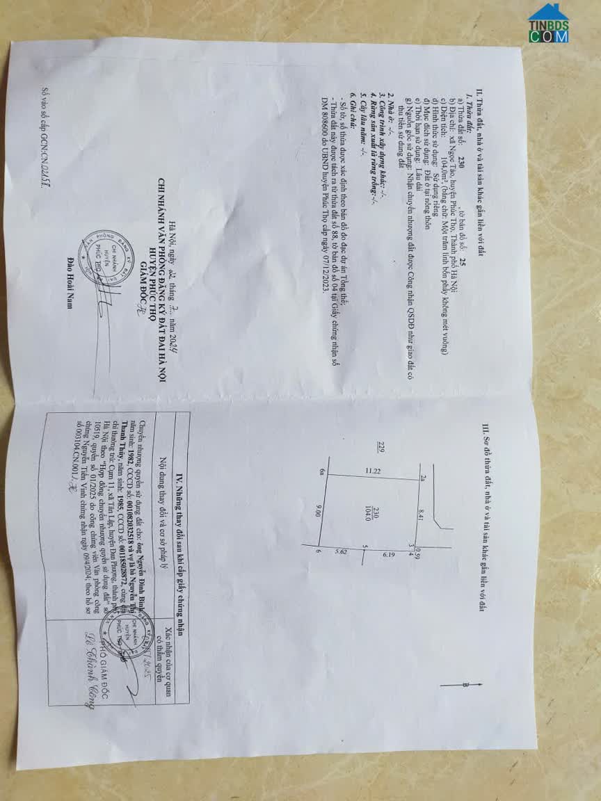 Đất nền chính chủ ở Ngọc Tảo, Phúc Thọ, Hà Nội, với diện tích 135 m2. + Giá bán chỉ 48 triệu / m2, phù hợp với nhu cầu đầu tư hoặc xây dựng nhà ở. +..