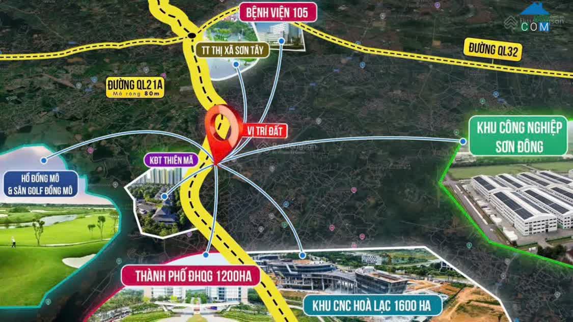 Vị trí hấp dẫn: - Trại Hồ, Cổ Đông, hưởng lợi trực tiếp từ Khu CNC Hòa Lạc và Tổ hợp ĐHQG. Đi lại dễ dàng: - Chỉ 2 phút lái xe ra Quốc lộ 21 rộng 80 mét. ...