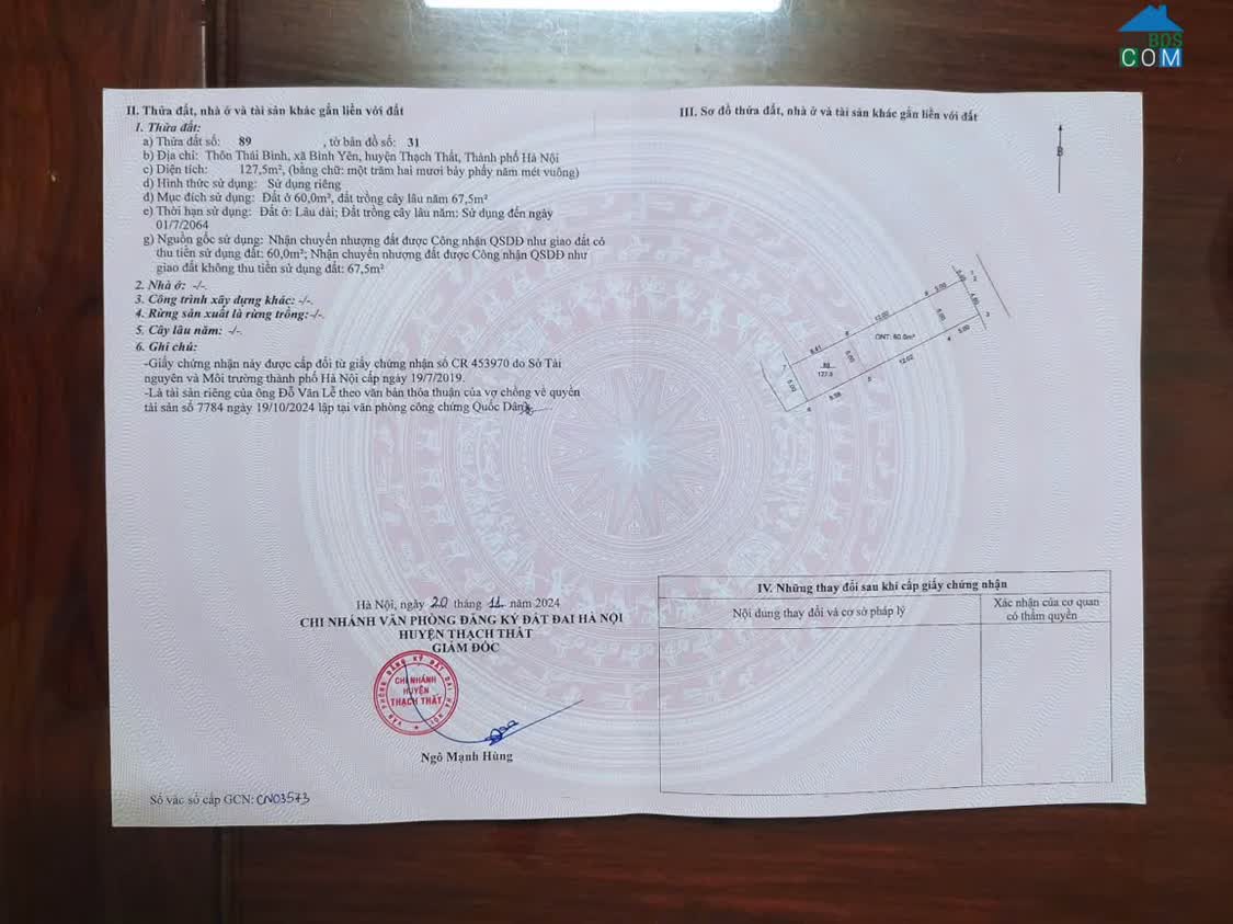 Chính chủ cần bán lô đất 156, 3m² Tại Thôn Mục Uyên 1, Tân Xã, Thạch Thất, Hà Nội + Diện Tích: 156, 3m², Thổ cư 65m², còn lại là đất trồng cây lâu năm +..