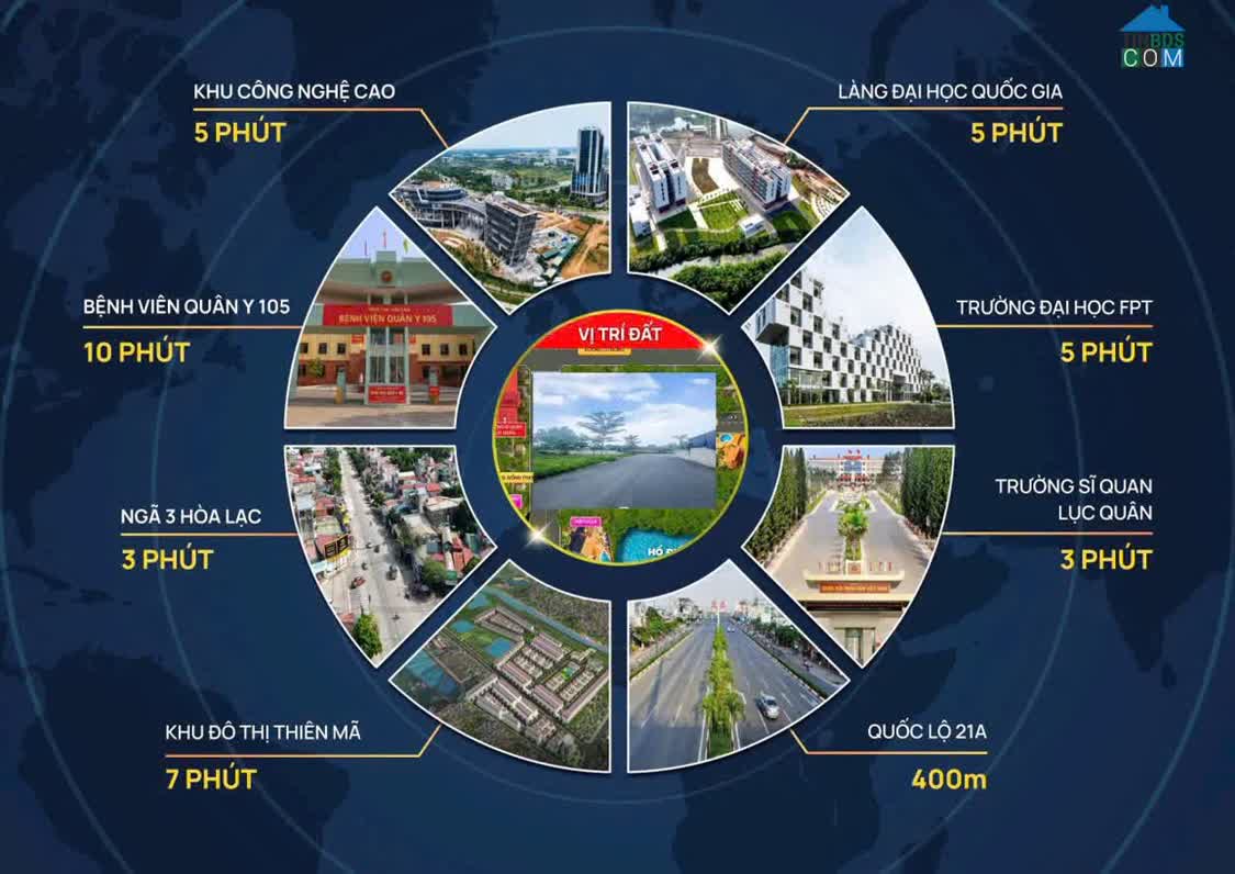 VỊ TRÍ ĐẮC ĐỊA - TIỀM NĂNG VÔ HẠN Địa chỉ: Ngay ngã ba chợ Hòa Lạc, khu vực dân cư đông đúc nhất. Kết nối: Cách ĐH FPT, ĐH Quốc Gia chỉ 2km; cách QL21 chỉ 400m...