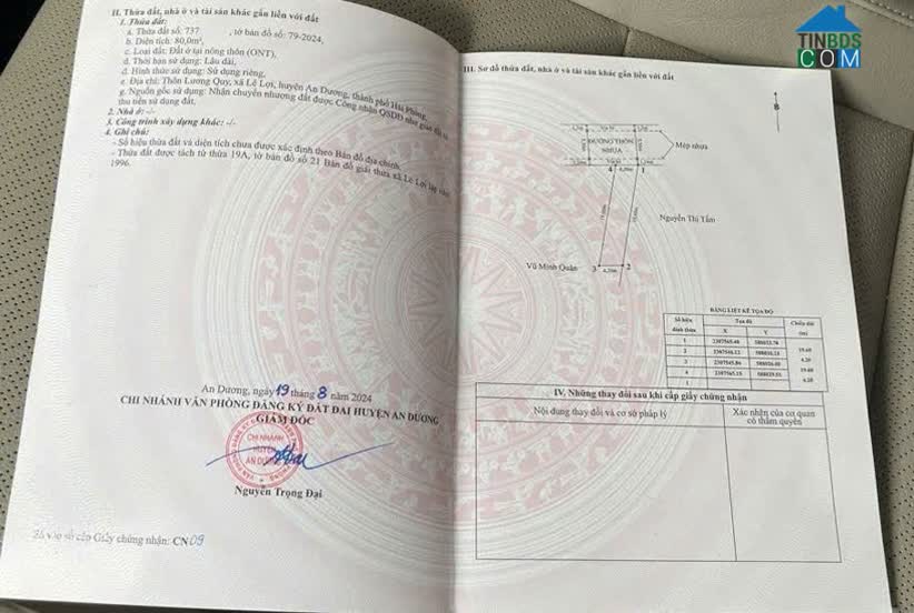 BÁN LÔ ĐẤT ĐẸP – MẶT TRỤC LƯƠNG QUY, LÊ LỢI, AN DƯƠNG * Diện tích: 80m² vuông vắn, vị trí cực hiếm * Mặt trục Lương Quy – tuyến đường sầm uất, kinh doanh...