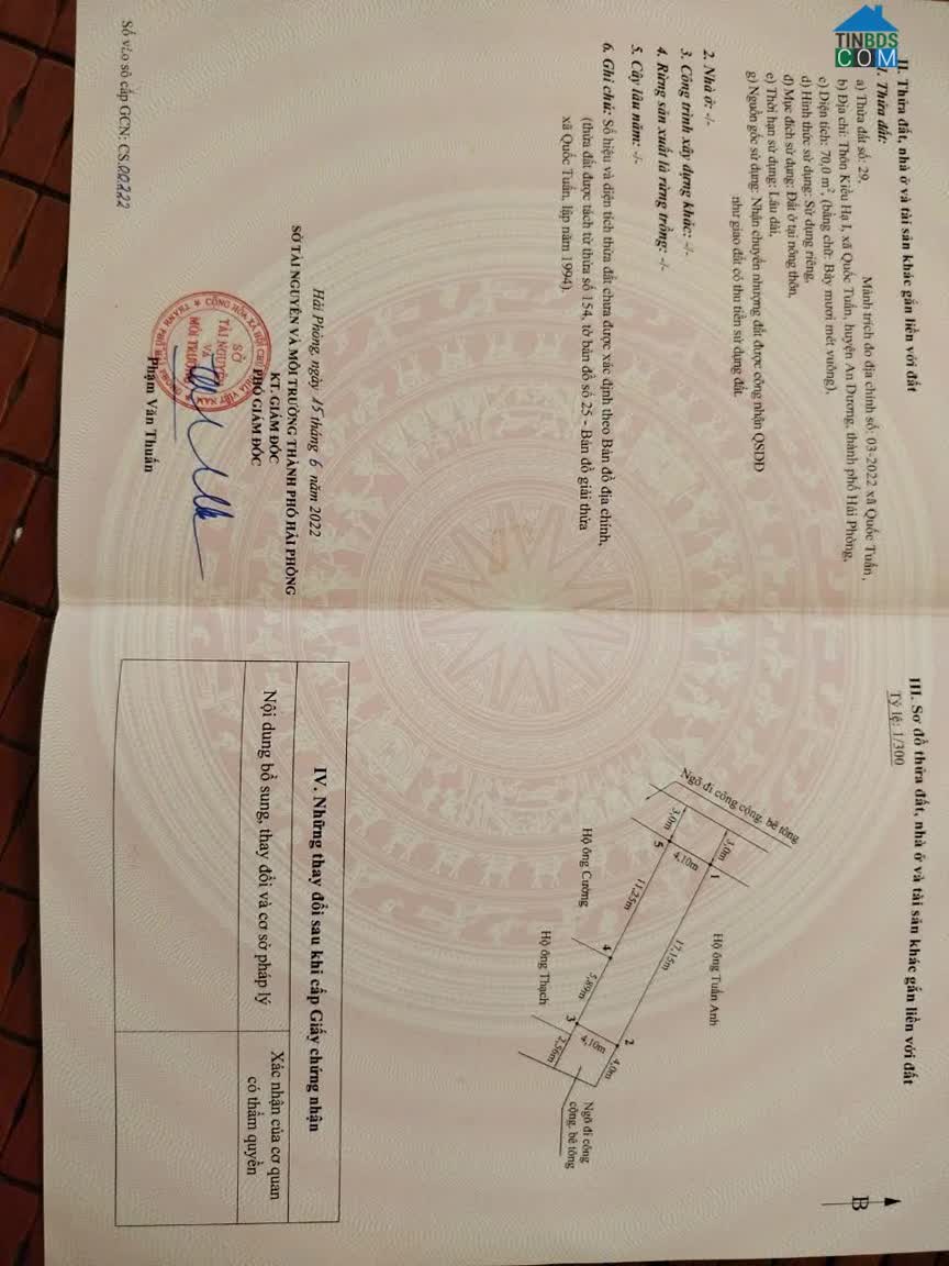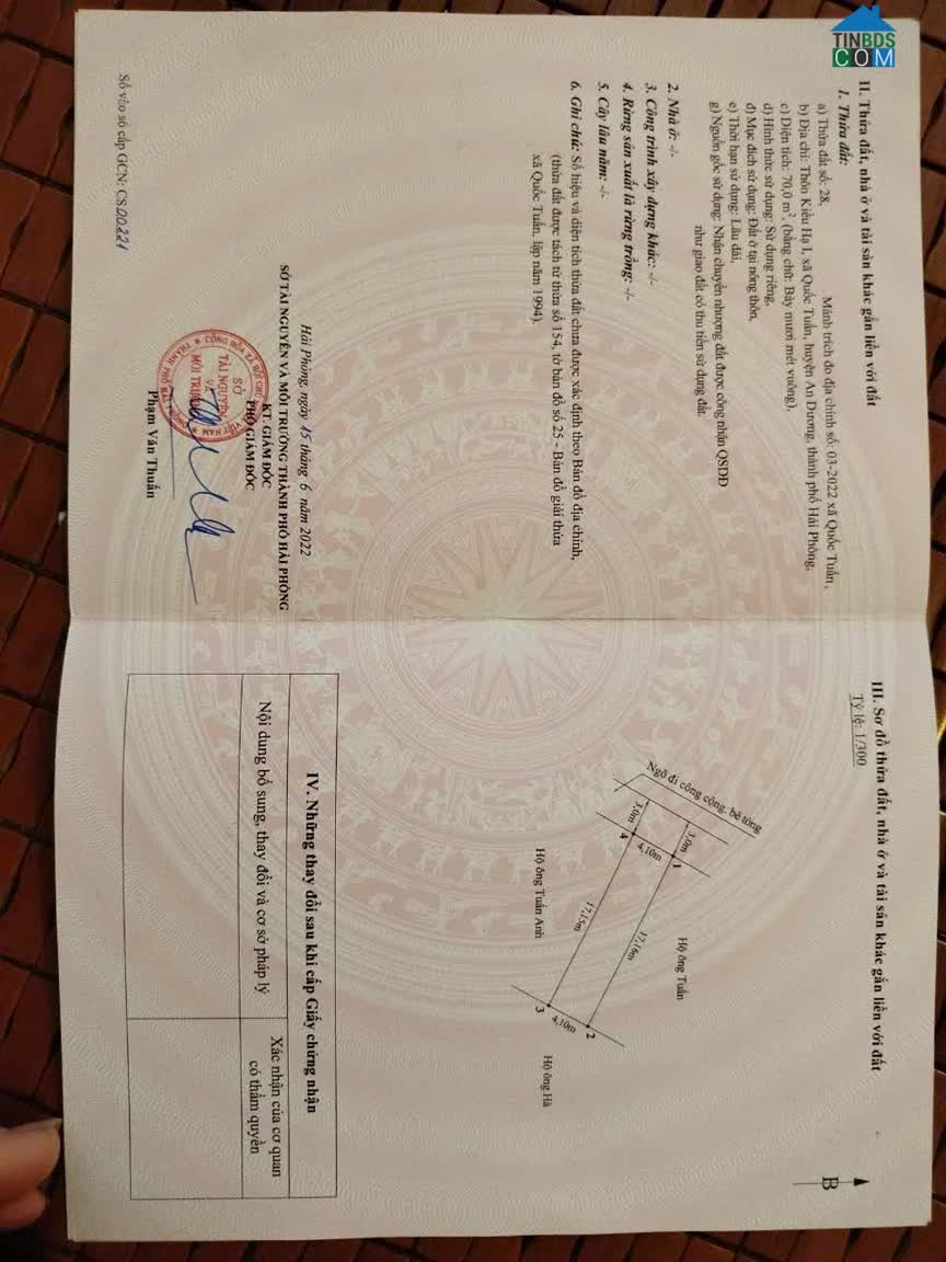 CẦN BÁN LÔ ĐẤT ĐẸP – TDP CÁCH THƯỢNG, AN DƯƠNG * Diện tích: 99, 5m² – đất vuông vắn, vị trí trung tâm * Vị trí: Ngay trung tâm Cách Thượng, sát Quán Toan..