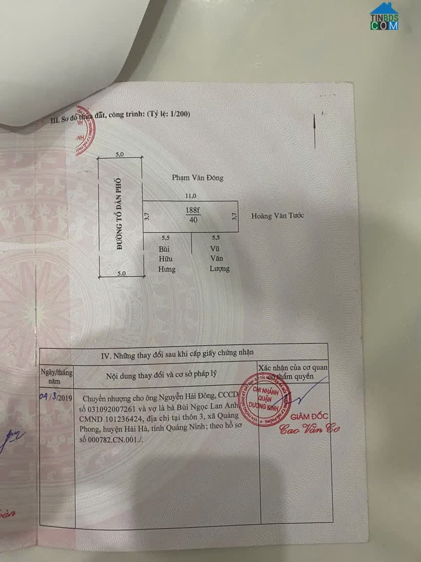 -Diện tích: 40m² (thực tế 48m²)-Mặt tiền: 5,5m vuông vắn-Đường: Bê tông rộng 6m, ô tô tránh thoải mái-Vị trí: Gần trục chính Vũ Thị Ngọc Toàn – trung tâm phường Tân Thành, quận Dương Kinh-Tiện ích: Cách chợ, trường học, UBND chỉ 200m – dân cư đông, hạ tầng hoàn chỉnh-Pháp lý: Sổ đỏ chính chủ, hướng Đông Nam-Tiềm năng: Khu vực gần KCN Đồ Sơn, đường ven biển & trục Phạm Văn Đồng – hạ tầng phát triển mạnh, thanh khoản cao-Giá bán: 1,1xx tỷ (có nhà cấp 4 sử dụng tốt)