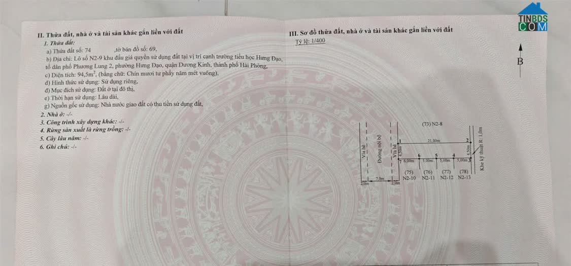 Bán lô đất bạt phân lô ngõ 136 Hải Phong – sát Vinhomes, giá hơn 1, x tỷ Hàng hiếm khu Hoà Nghĩa ZALO 0567 222 555 -Diện tích: 50m² -Mặt tiền: Vuông vắn, dễ xâ..