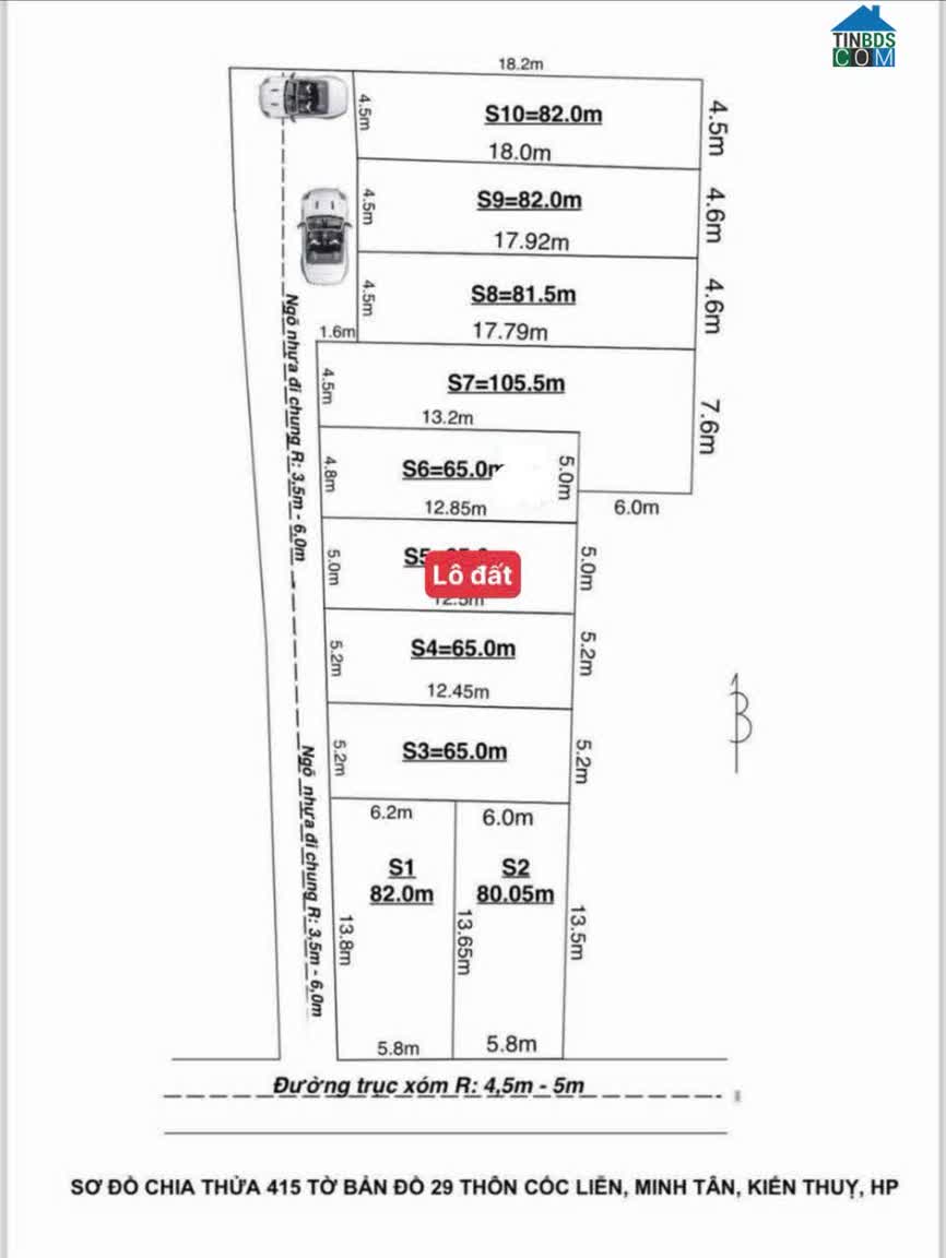 ĐẤT ĐƯỜNG NHỰA ĐOAN XÁ 3 KIẾN THUỴ – GIÁ F0 HIẾM 1. 6X TỶ – BIÊN TĂNG TỐT ZALO 0567 222 555 -Diện tích bìa: 65, 3m²-Diện tích sử dụng thực tế: ~80m²-Mặt tiền: 4,..