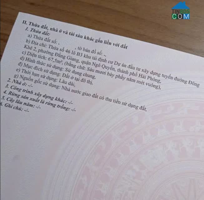 Chính Chủ gửi bán Lô 7C Lê Hồng Phong, Ngô Quyền, Hải Phòng ko lỗi lầm 60 m2, 4.6 m x 13 m, hướng Tây Nam Bìa hồng chính chủ Giá: 7x trieu/m2 Đường thông các ng..