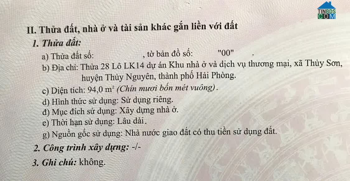 ► CHÍNH CHỦ CẦN BÁN LÔ ĐẤT VỊ TRÍ ĐẸP – TDP 2, P. THIÊN HƯƠNG, TP. HẢI PHÒNG ♦ Thông tin lô đất: • Diện tích: 60m² – Mặt tiền rộng 11, 05m, vuông vắn, dễ thi..