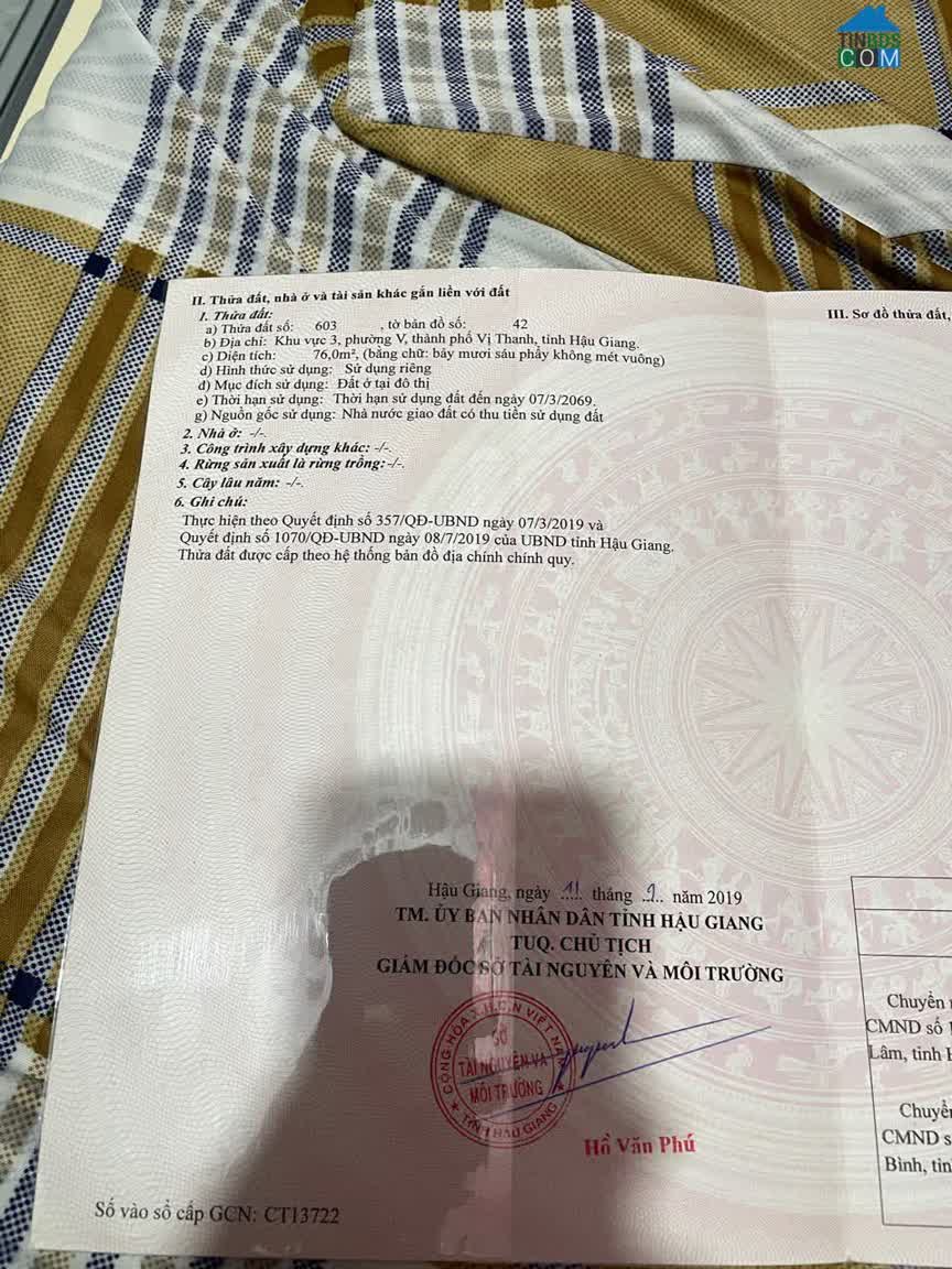 Chủ cần bán gấp đất nền tại phường III, thành phố Vị Thanh, tỉnh Hậu Giang. – Diện tich: 24, 3×30, 2=733, 3m2. – Loại đất: Đất trồng cây hàng năm khác. – Vị tr..
