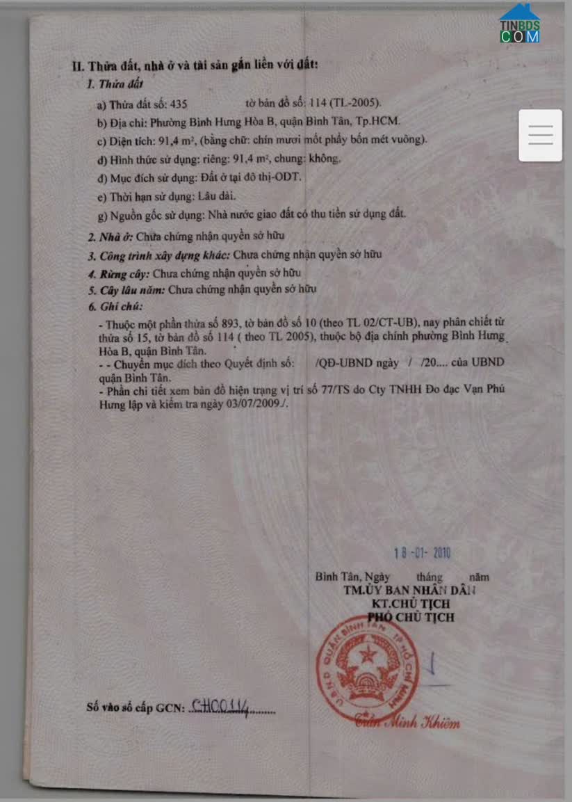 Bán đất thổ cư 100%, HXH đường số 6, BHH B, Bình Tân, 178m2, ngang 6, 4m + Dt: 6, 4m x 27, 8m + Vị trí: Nằm trong HXH đường số 6, BHHB, Bình Tân..