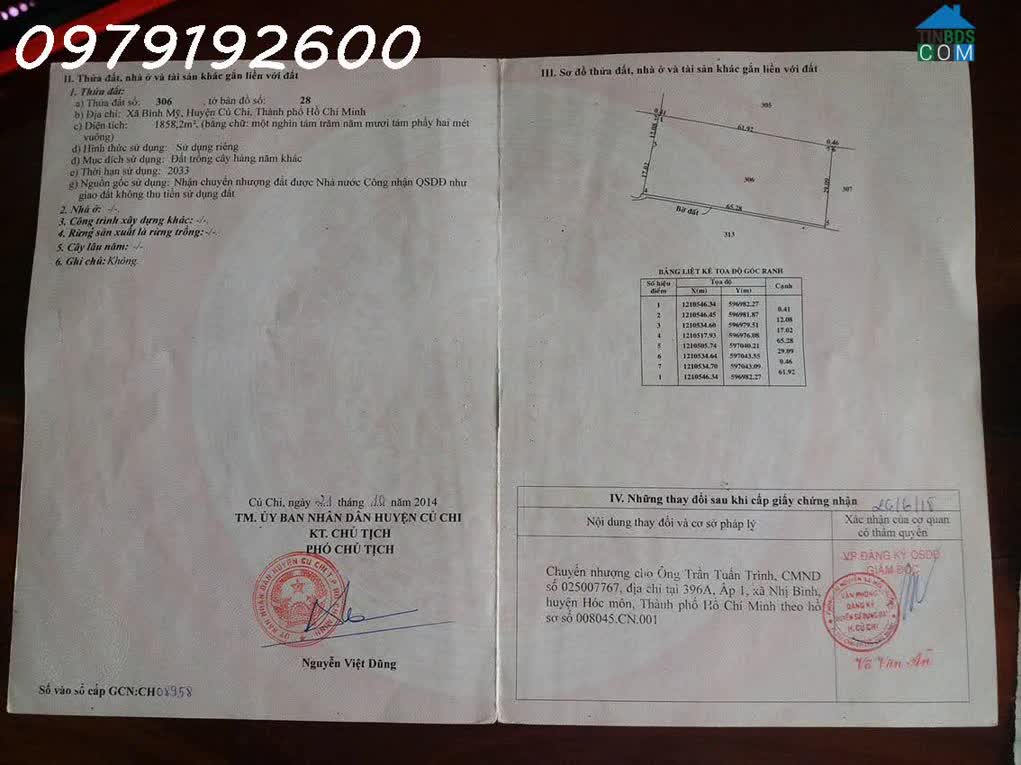 Bán lô đất ngang 25 × 100 Tổng Diện tích: 2. 517,3m² Có 1. 990m² thổ cư, còn lại đất CLN. Diện tích xây dựng 2000m² Đc: Xã phước thạnh - củ chi - HCM [...