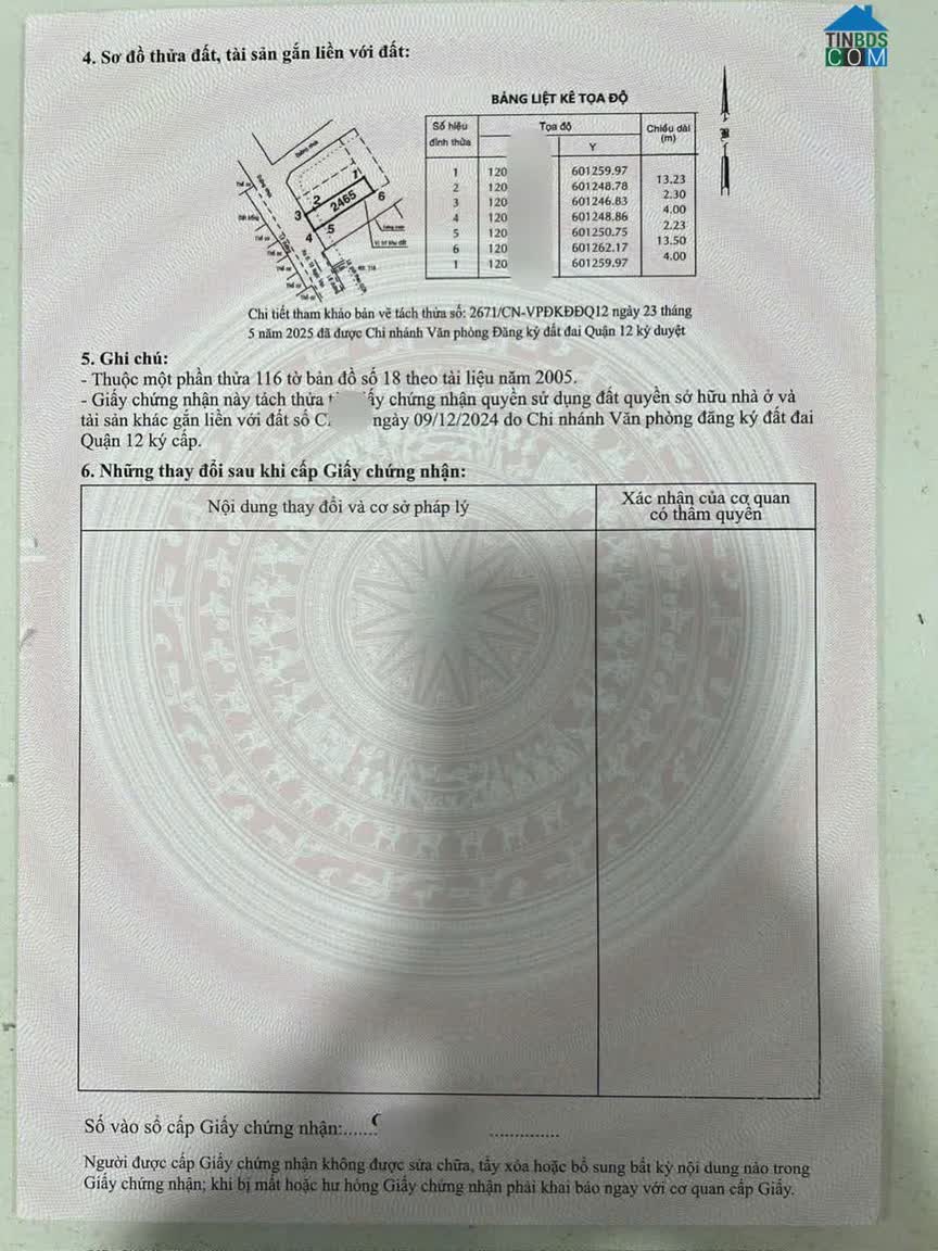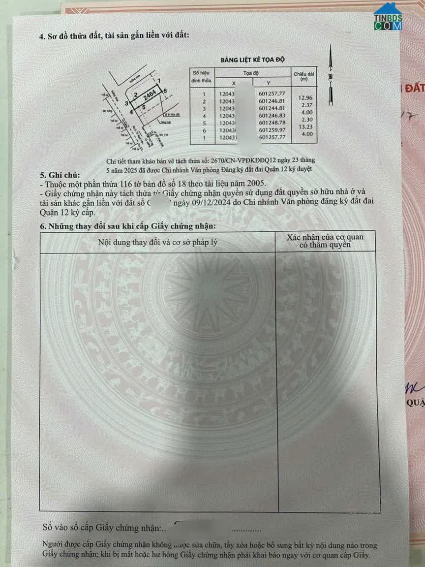 Chính chủ bán đất thổ cư sổ hồng riêng đường Trần Thị Hè (Q. 12), Tp. HCM; 0972538554 * Diện tích: 81, 2 m² (ngang 5m x dài 15, 53m) - Hướng: Đông..