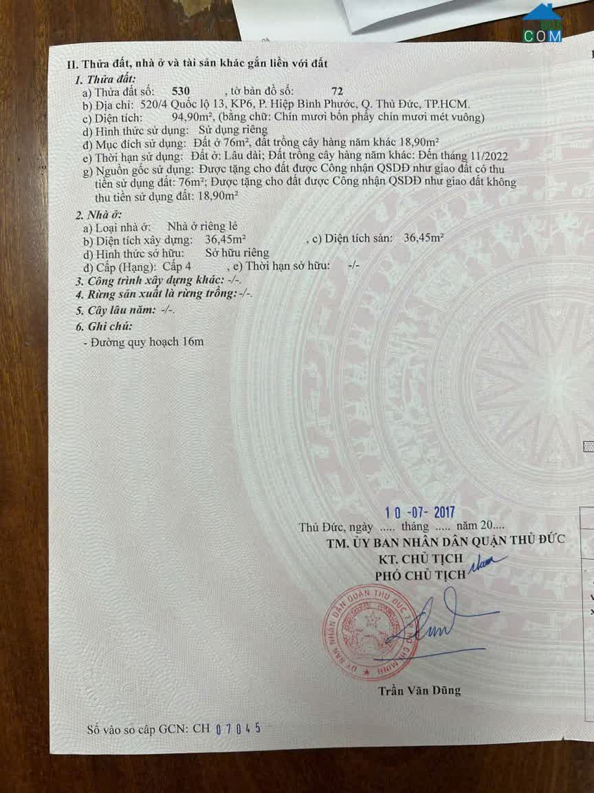 Ghi chú về Bán Lô Đất Mặt Tiền Hẻm 6m 520 Quốc Lộ 13 Hiệp Bình Phước Thành Phố Thủ Đức