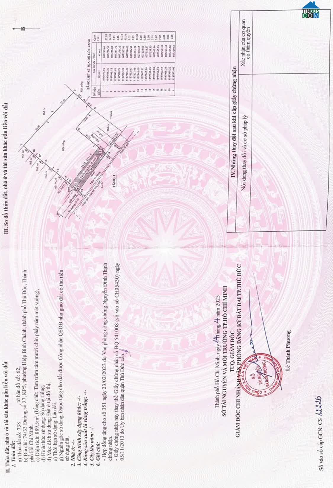 - Diện tích: 23.5x33m= 1015m, công nhận 895m full thổ cư, nở hậu 38m