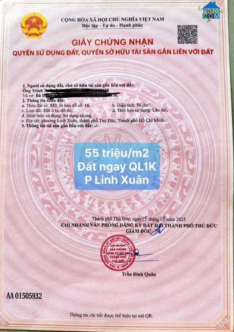 BÁN ĐẤT 88m2 Full thổ cư đường số 5 Linh Xuân TpHCM - gần Làng Đại học - 5. 4 tỷ - Đất trống tiện xây mới ở/kinh doanh/căn hộ dịch vụ cho thuê. - Sổ riêng s..