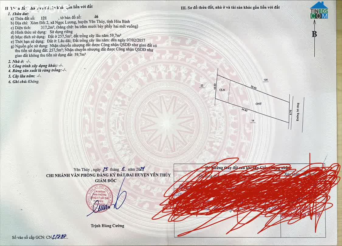 Vị trí: Khu phố Tân Khánh, thị trấn Hàng Trạm, huyện Yên Thủy, tỉnh Hòa Bình (giáp Phú Thọ) Diện tích: 1. 575 m² Mặt tiền: 35, 5 m – chiều sâu khoản..