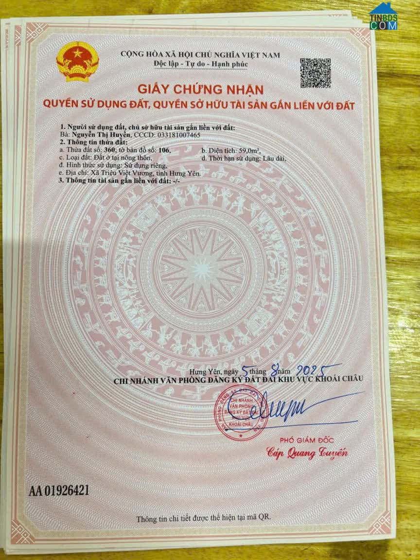 Hưng Yên* Diện tích: 59m²* Kích thước: Mặt tiền 7,5m – Chiều sâu 8,5m* Cực kỳ vuông vắn, dễ thiết kế – Xây nhà lên thì đẹp mê ly! * Đường trước đất rộng 5m, ô tô tránh nhau thoải mái* Khu dân cư đông đúc, thân thiện – Hàng xóm toàn nhà giàu, văn minh* VỊ TRÍ ĐẮC ĐỊA: - Cách chợ chỉ 200m- Cách