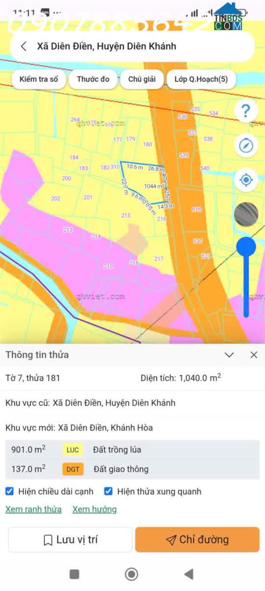 1. 040 MÉT NẰM NGAY MẶT ĐƯỜNG NHỰA RỘNG 20 MÉT CÓ VỈA HÈ. GIÁ: 349 Triệu. Bám đường nhựa hiện trạng tới 25 mét. Toạ Lạc: X. Diên Điền,..