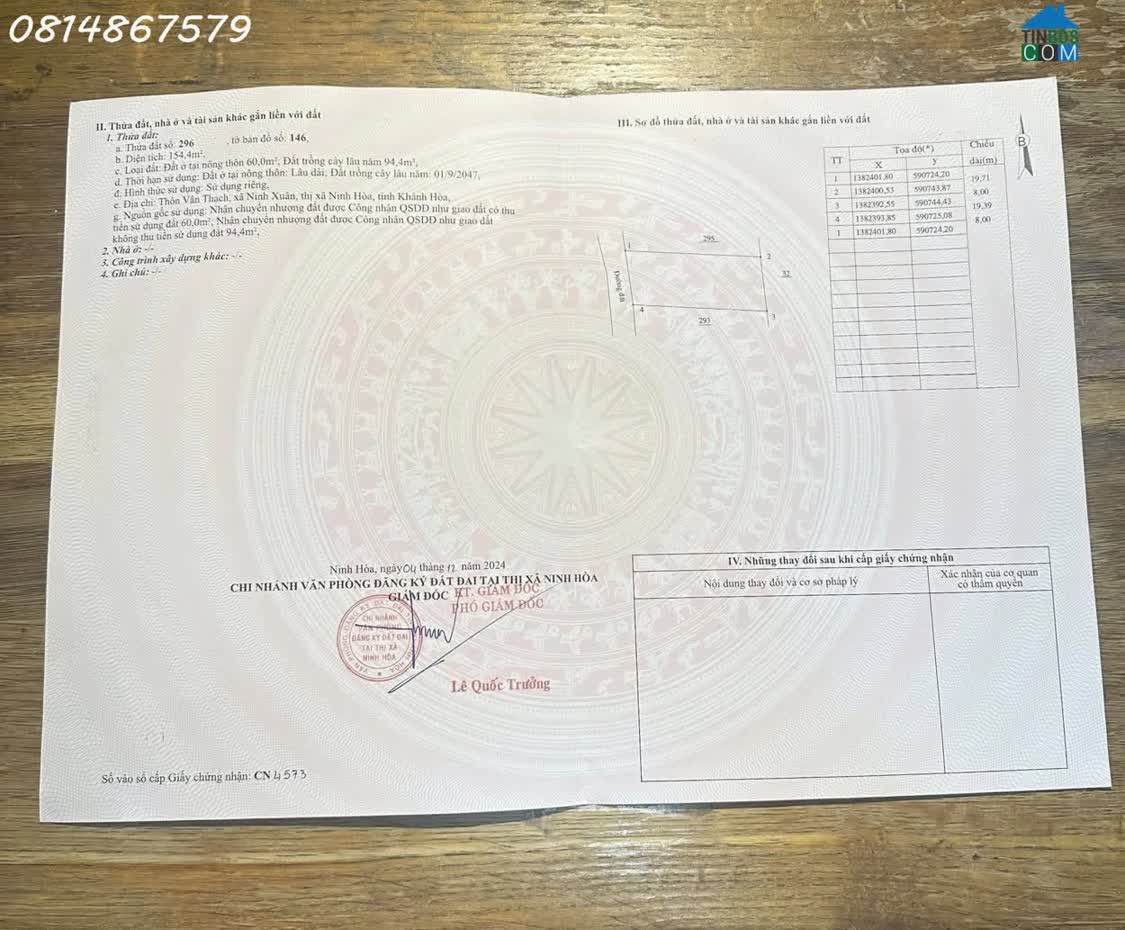 CƠ HỘI ĐẦU TƯ SINH LỜI CAO, CHÍNH CHỦ BÁN 2 LÔ ĐẤT MẶT TIỀN TỈNH LỘ 5. Địa chỉ: Đường Tỉnh Lộ 5, Xã Ninh Tây, Ninh Hòa, Khánh Hòa 1. Mảnh 1: - Tổng diện tíc..