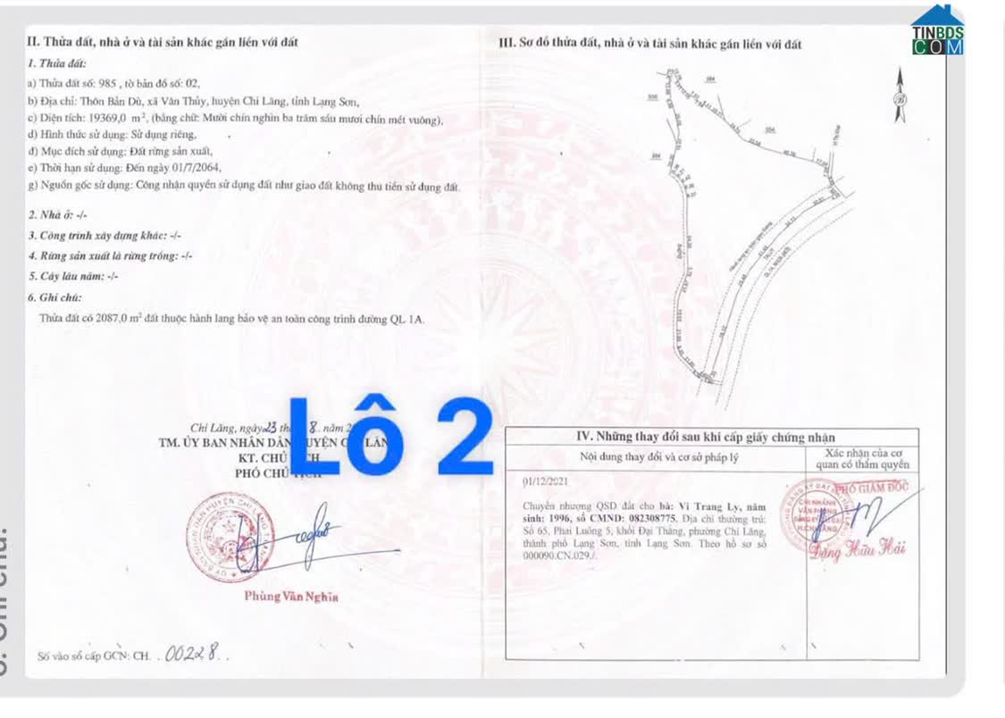 • Lô 2: Diện tích 19. 369m² (khoảng 1,94ha) đất rừng sản xuất, đã được phê duyệt 8. 000m² đất dịch vụ thương mại (chưa chuyển đổi), mặt tiền 200m giáp Quốc lộ 1A – thuận tiện mở khu du lịch hoặc làm kho bãi lớn