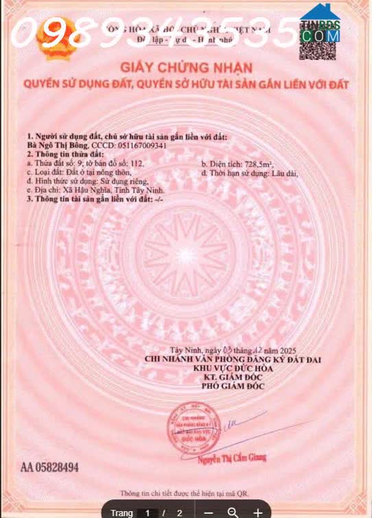 Nhanh tay! Cơ hội sở hữu lô đất mặt tiền Đường ĐT 825, Xã Hậu Nghĩa, Tây Ninh - Huyện Đức Hòa, Long An cũ. + Diện tích: 480m2. + Chiều ngang mặt tiền: 12m, ...