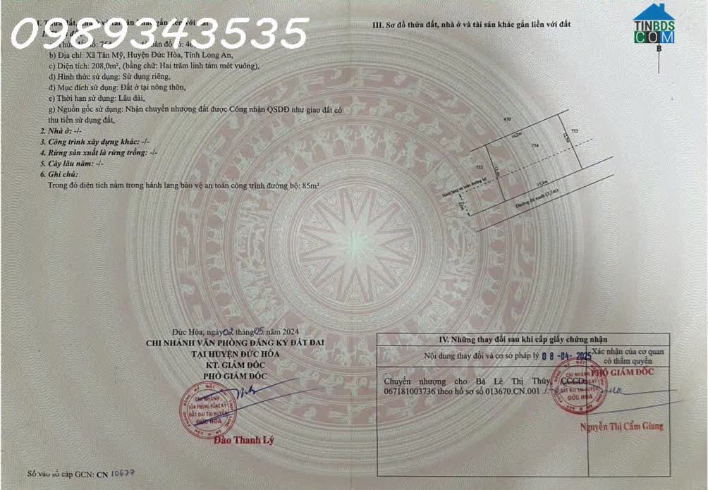 ĐẤT CẦN BÁN Địa chỉ; Ấp Giồng Ngang, Hoà Khánh Đông, Đức Hoà, Long An Vị trí đẹp, 1/đường Tua7 đang đổ nhựa 100m. Cách DT823D và nhựa Bàu Sen 300m. Gần trư..