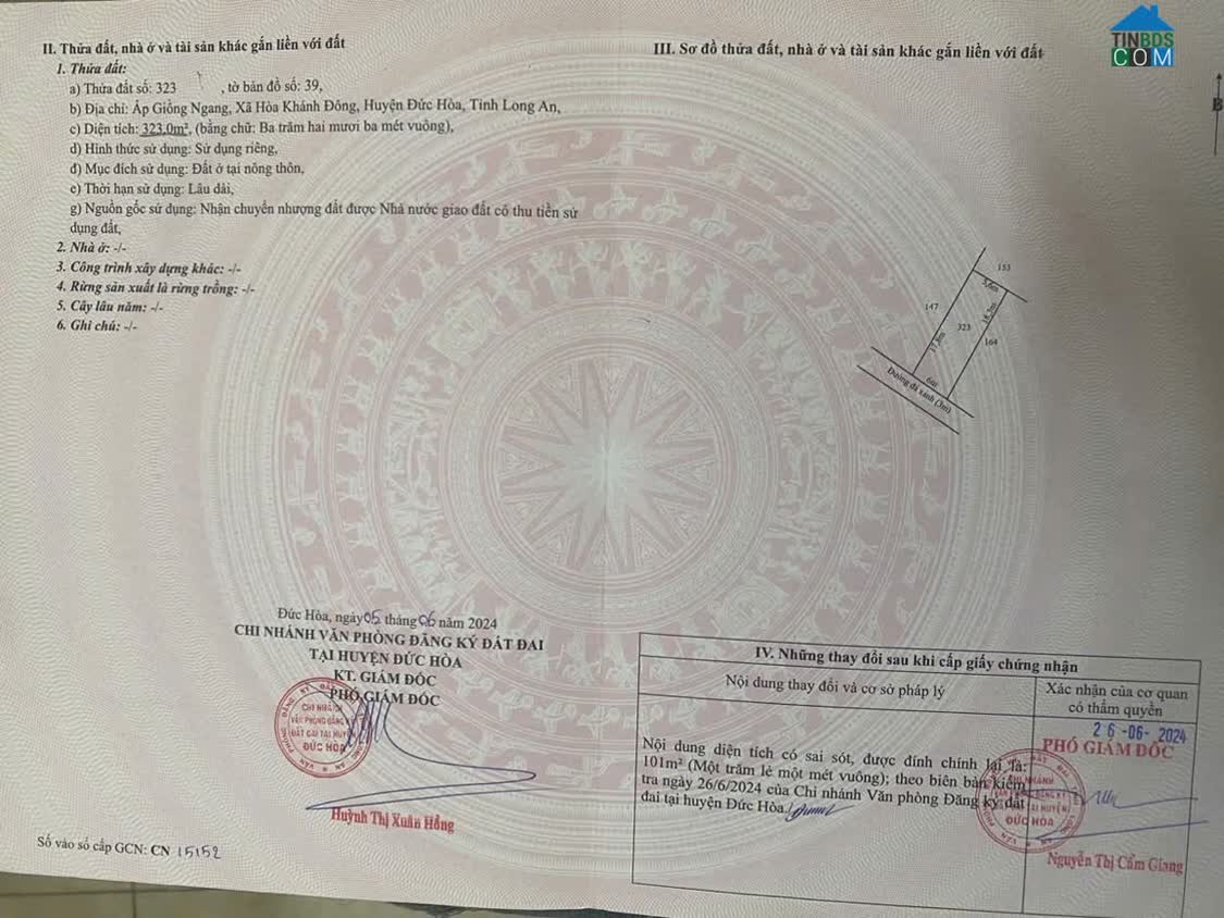 BÁN ĐẤT TẠI TÂN PHÚ – ĐỨC HÒA – LONG AN - Địa chỉ: Xã Tân Phú, huyện Đức Hòa, tỉnh Long An - Diện tích: 3. 379 m² - Đường trước đất 3m, xe bán tải, xe hơi..