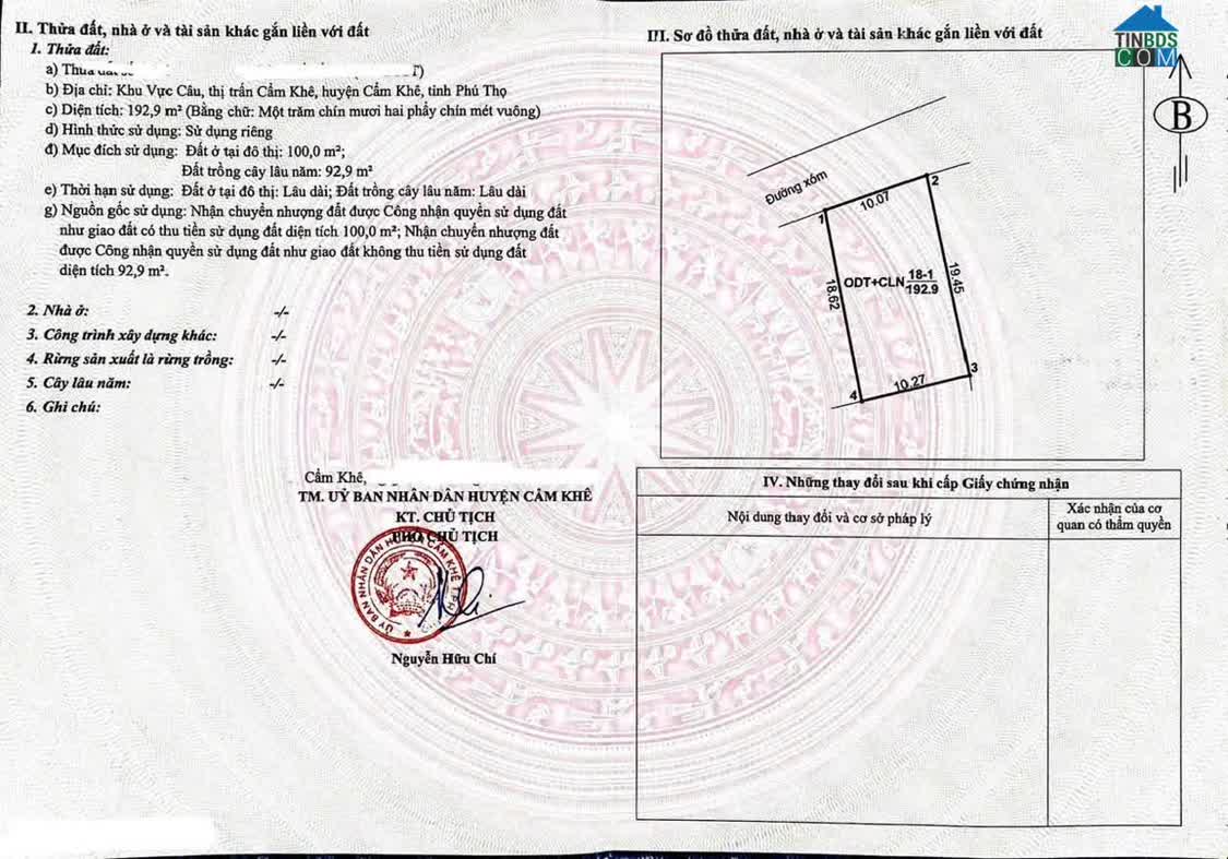 CHÍNH CHỦ CẦN BÁN ĐẤT TẠI KHU SUÔNG 1 (HƯƠNG LUNG CŨ) – PHÚ KHÊ *Địa chỉ: Xã Hương Lung - Cẩm Khê - Phú Thọ (nay là Phú Khê) * Vị trí đẹp, c..