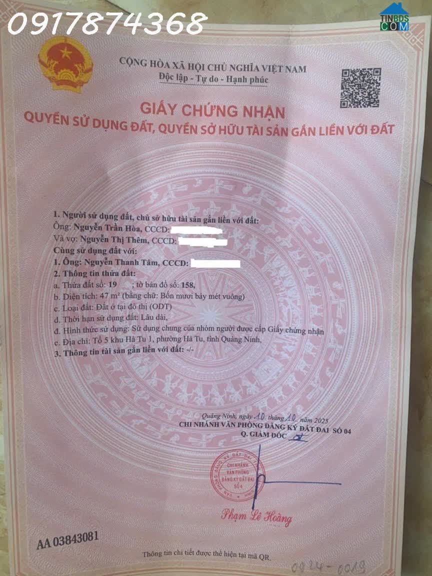 CHÍNH CHỦ CẦN BÁN LÔ ĐẤT TẠI TỔ 7 – KHU 7, PHƯỜNG HÀ TU, TP. HẠ LONG- TỈNHQUẢNG NINH - Diện tích: 100 m²- 100m2 (full xây dựng) => Giá bán: 1 tỷ 5 (có thươn..